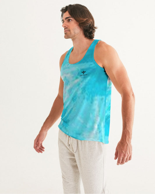 Blue and Black Tie Dye Canvas Drawstring Bag