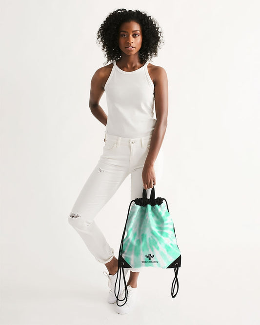 Blue and Black Tie Dye Canvas Drawstring Bag
