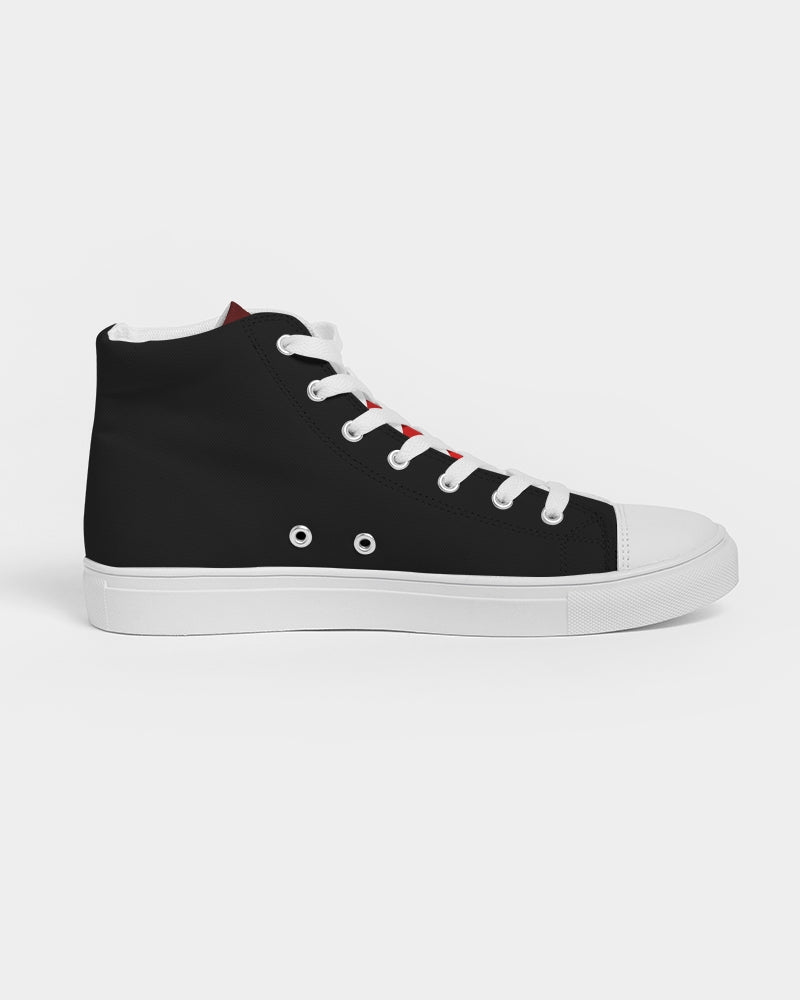 About The ArtBlack/Red Spectrums The colors of he rainbow Product DetailsRock your custom made kicks on a trendy classic. Our Women's Hightop Canvas Shoe is a minimalist sneaker but gives comfort for a day or edgy night look.